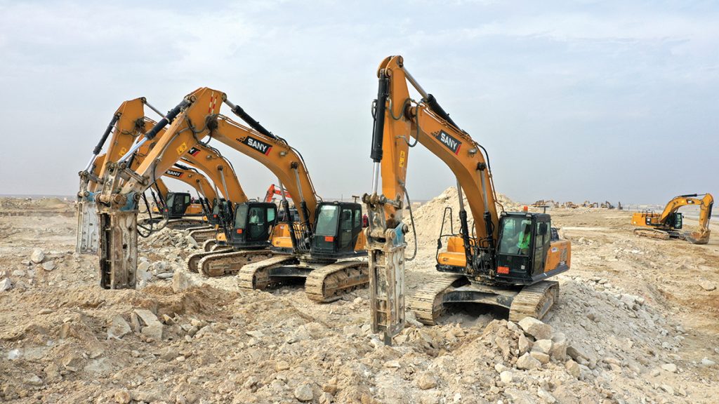The Sany excavators can be supplied with a range of attachments, including the Sany bucket or a range of jackhammers. The optimal size is the large 3-tonne jackhammer, which the excavator can readily handle. “This configuration was enjoyed by contractors working at Al Mutlaa, as it was highly productive and with overall low fuel consumption,” said Ghazaleh. Whereas competitor machines typically use around 350 litres of fuel in an 8-hour shift, the Sany excavator uses 280-290 litres.